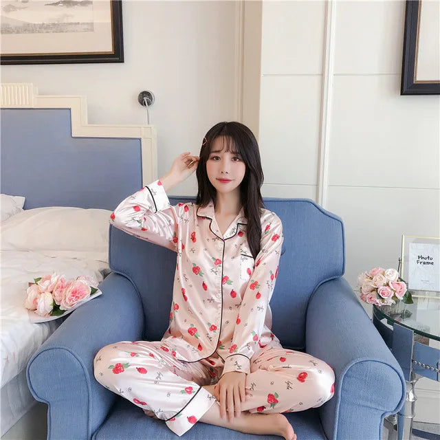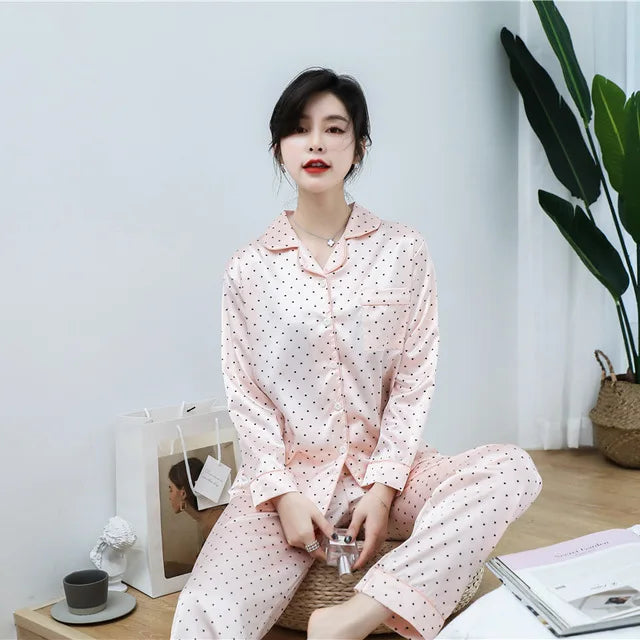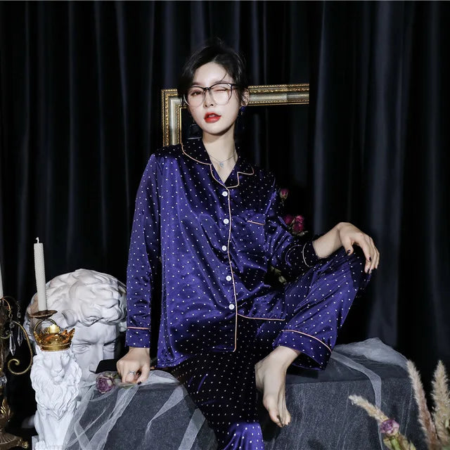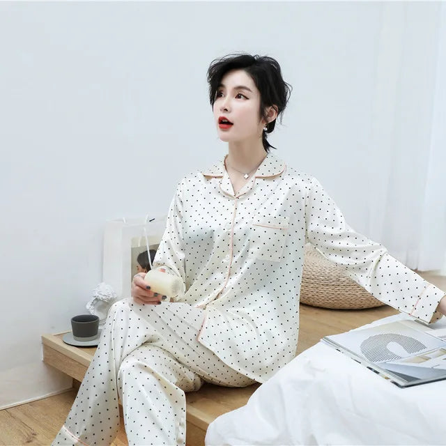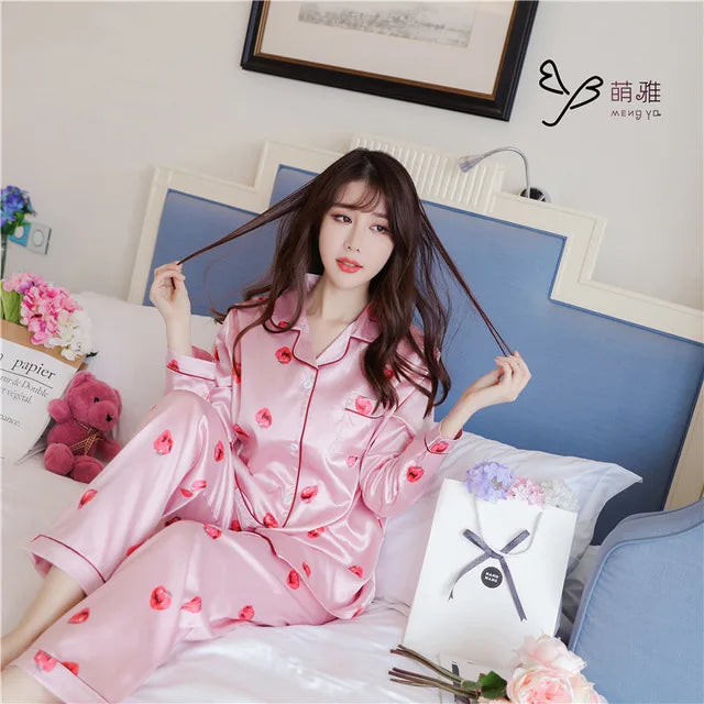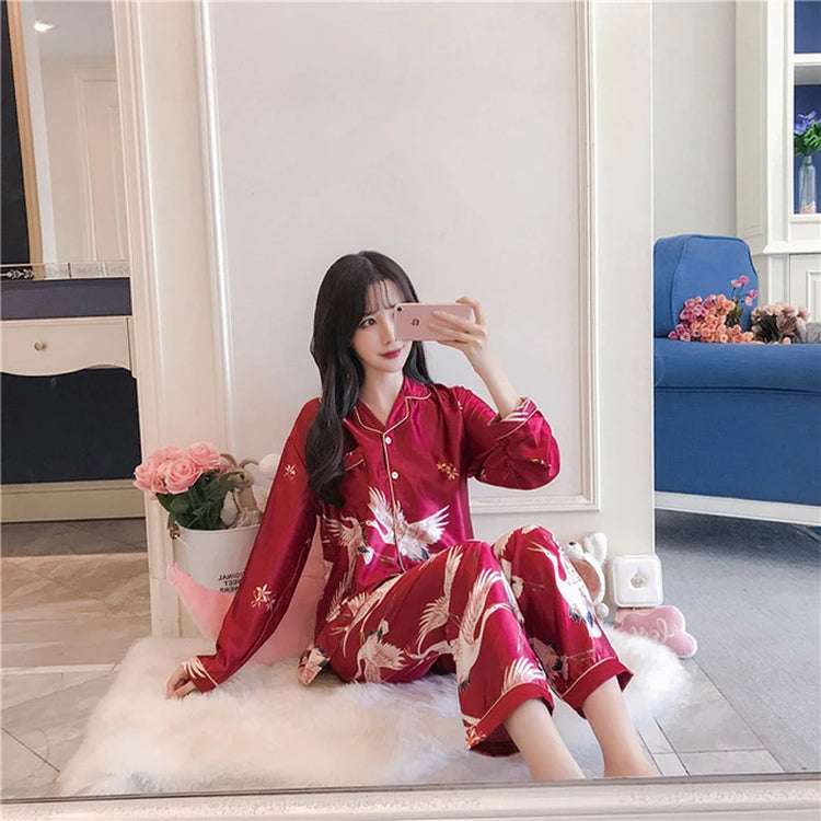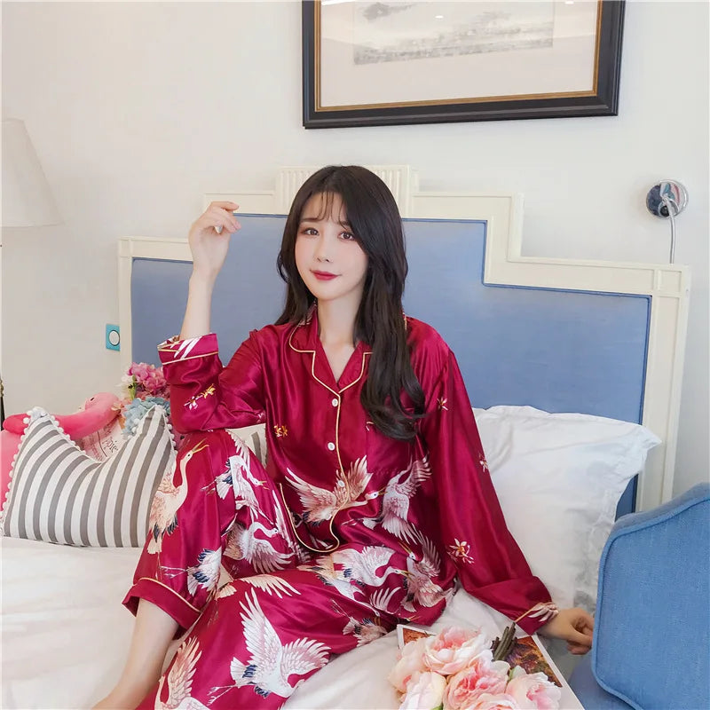 2PCS Pajamas Sets Womens Long Sleeve Long Pants Sleepwear Silky Satin Home Wear Nightgown Oversize 5XL Autumn New Sleepshirts