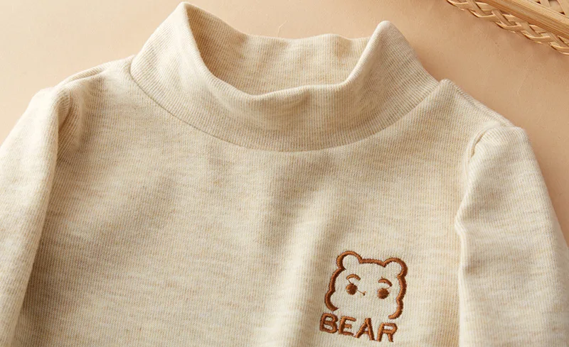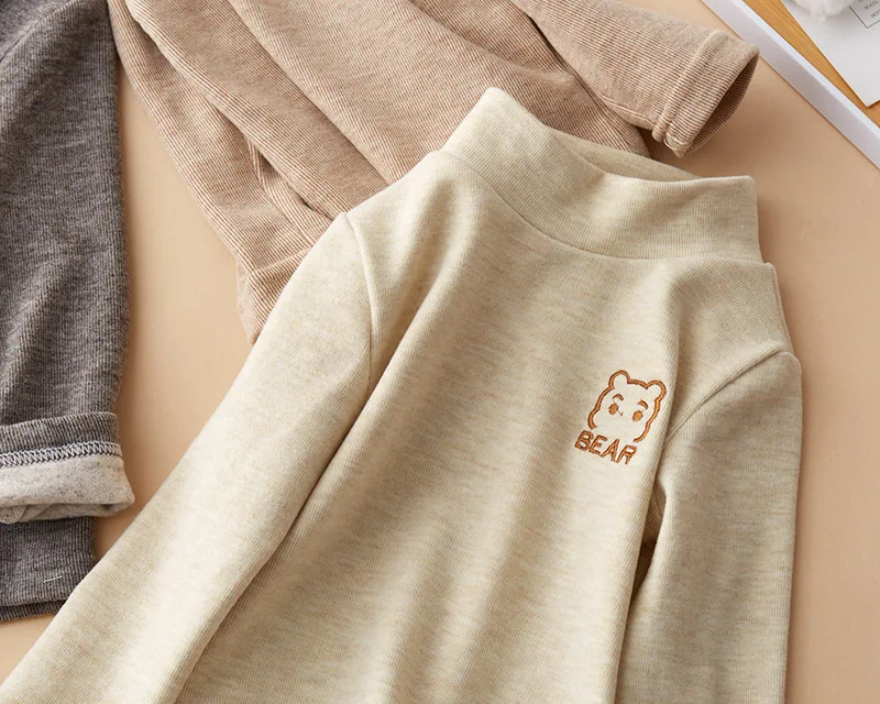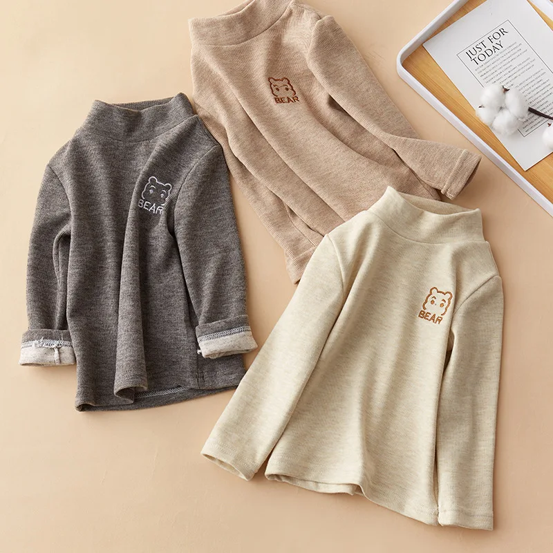 Children's T-Shirts Bear Embroidery and Fleece Long Sleeve Base Shirt Girls Boys Clothes Girls Tshirts Kids Clothes Boys