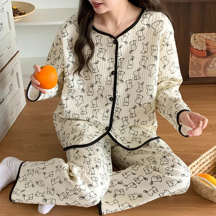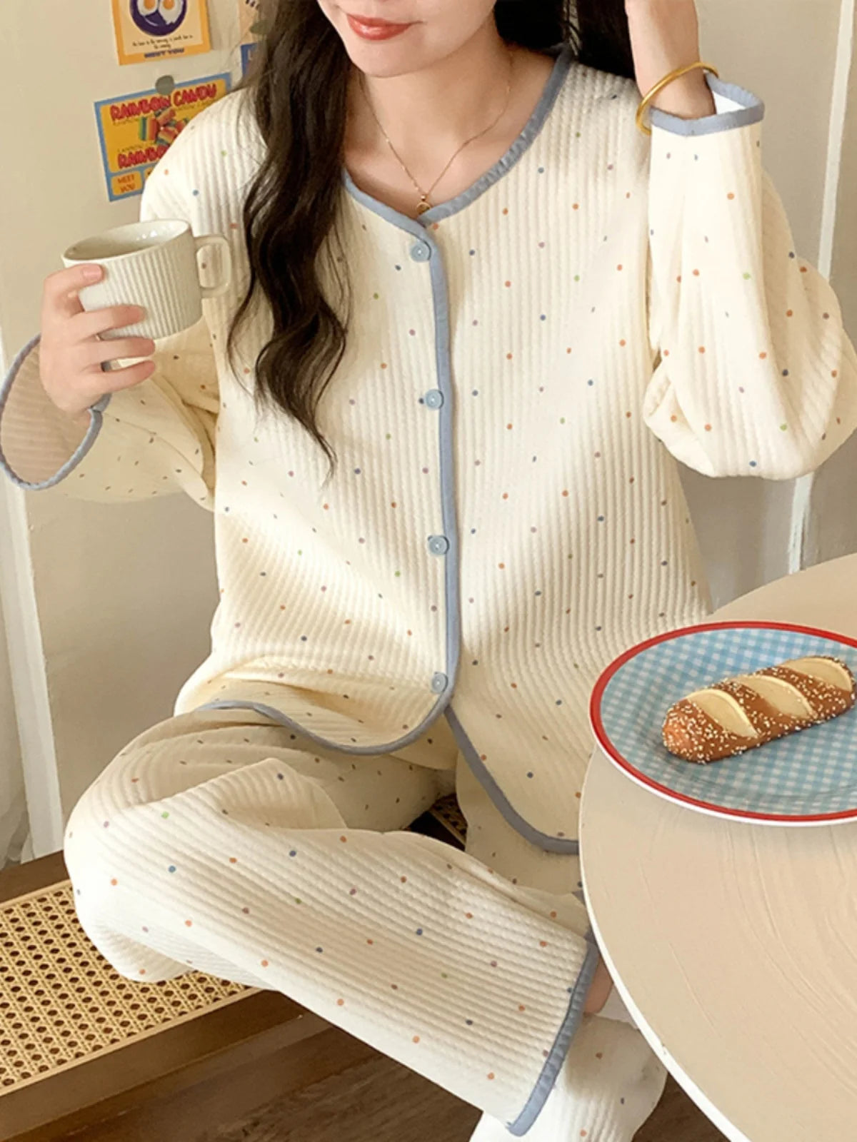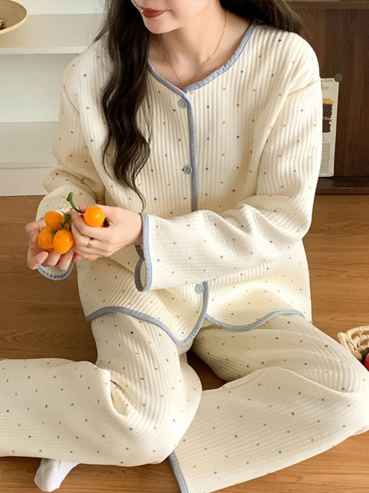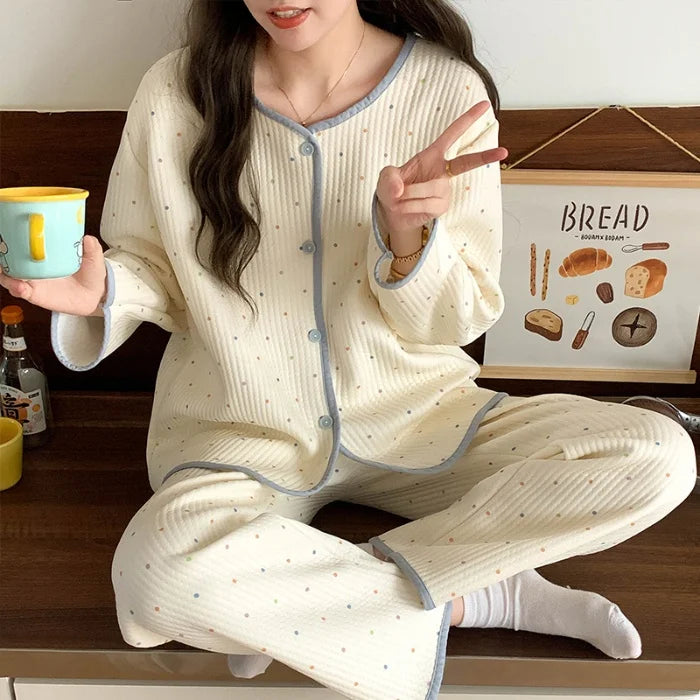 Designed for both autumn and winter seasons, this sleepwear set keeps you warm and stylish throughout the colder months.