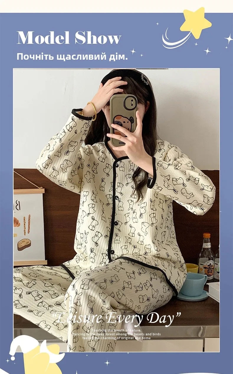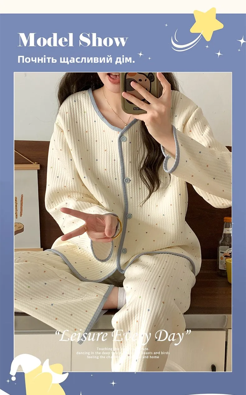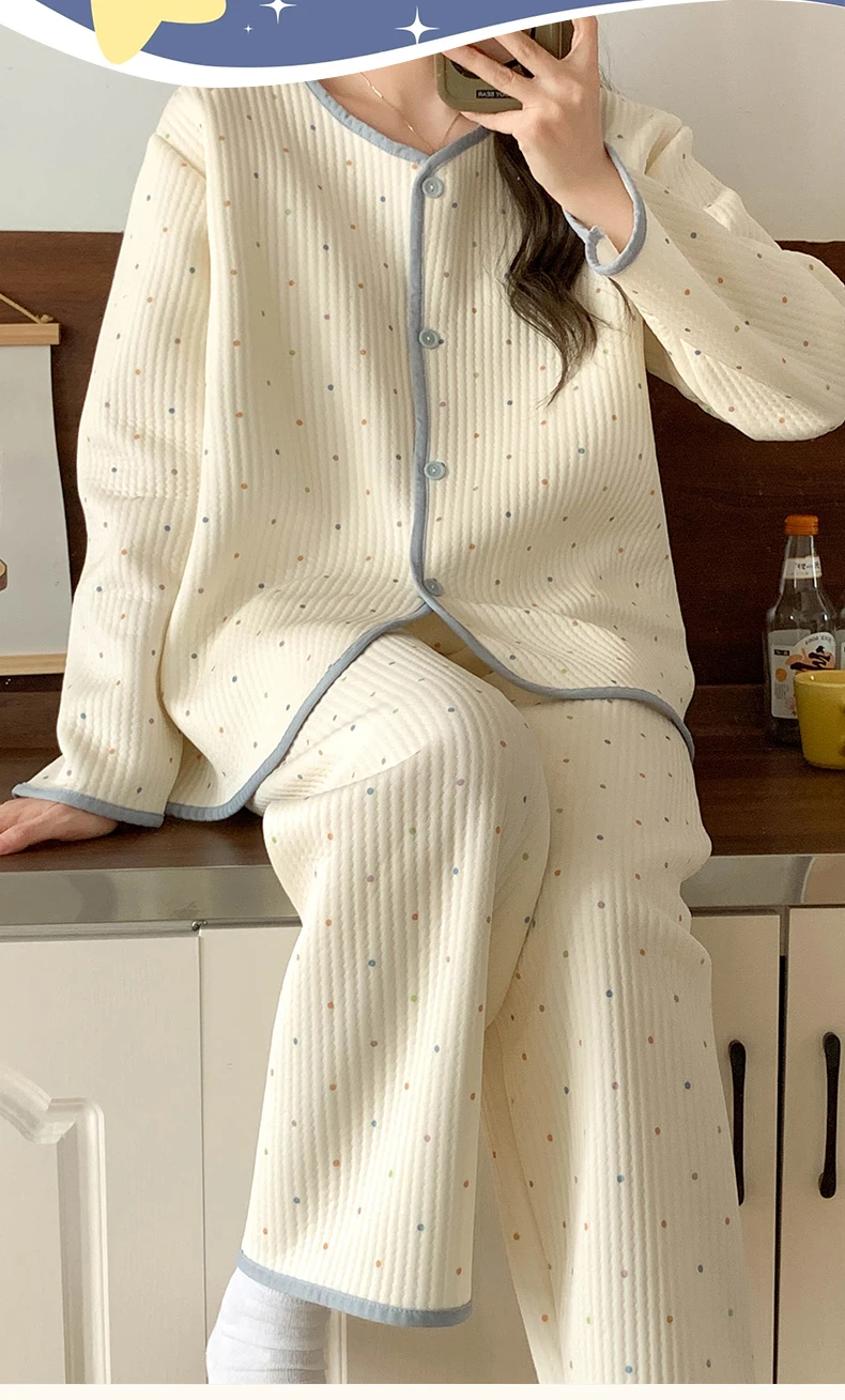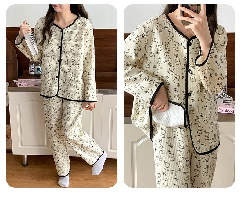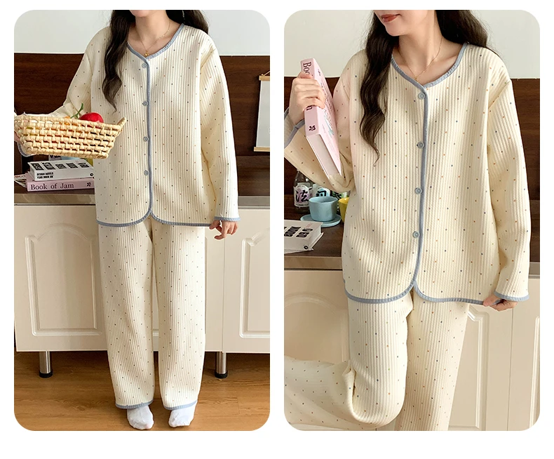 Designed for both autumn and winter seasons, this sleepwear set keeps you warm and stylish throughout the colder months.