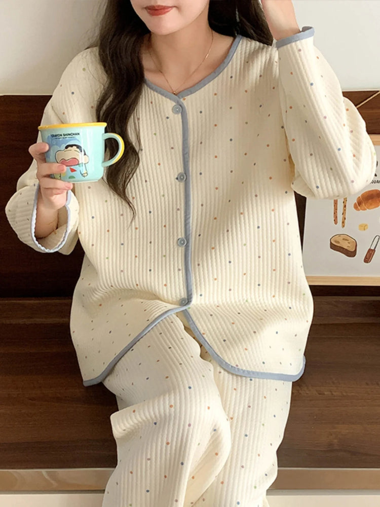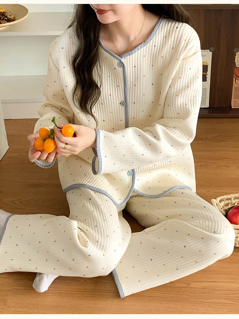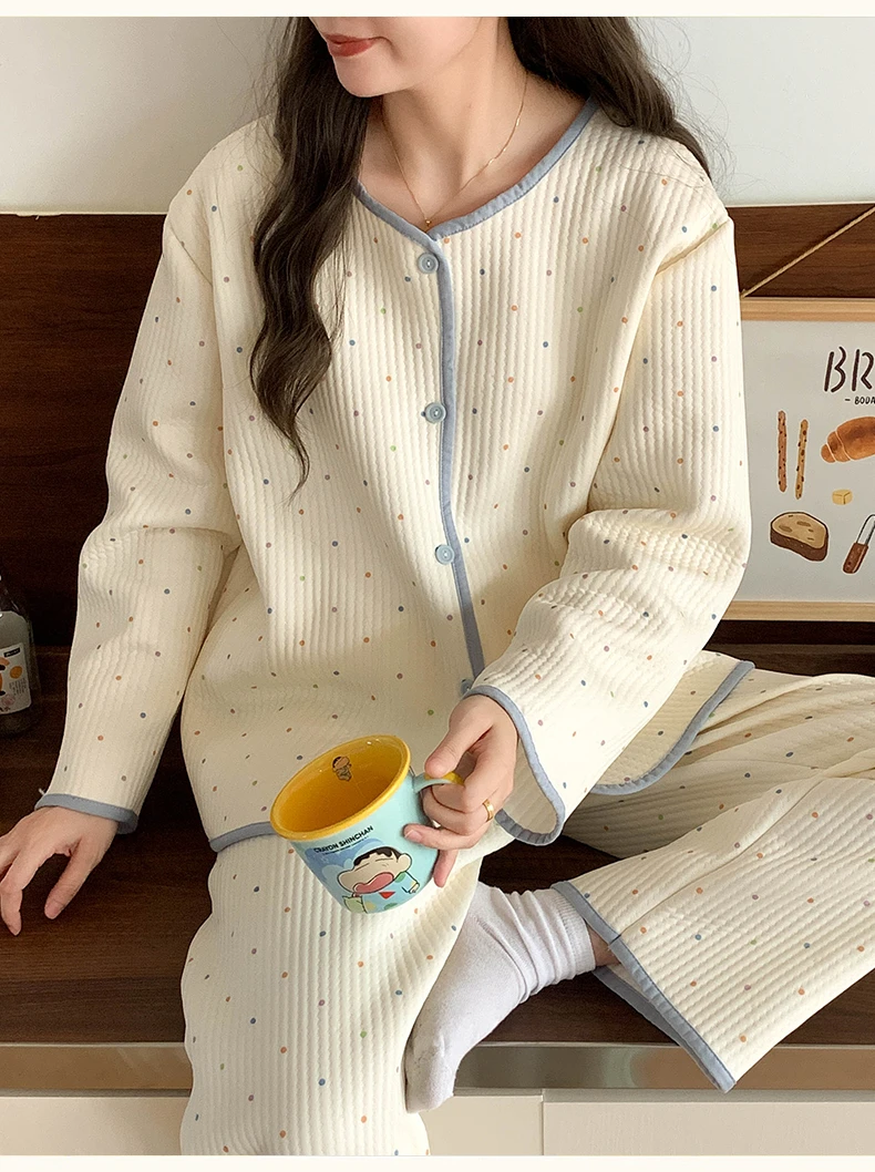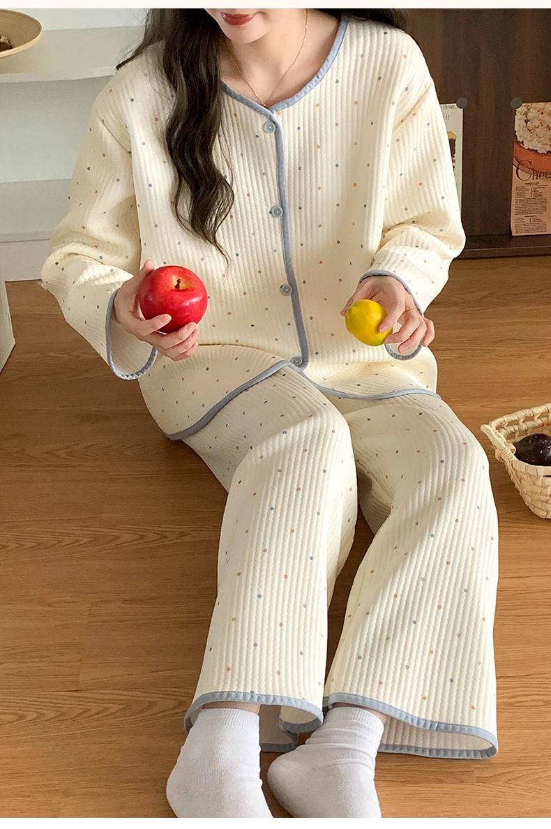 Designed for both autumn and winter seasons, this sleepwear set keeps you warm and stylish throughout the colder months.